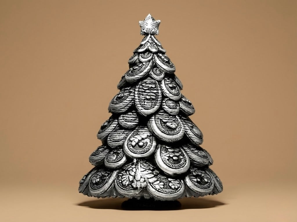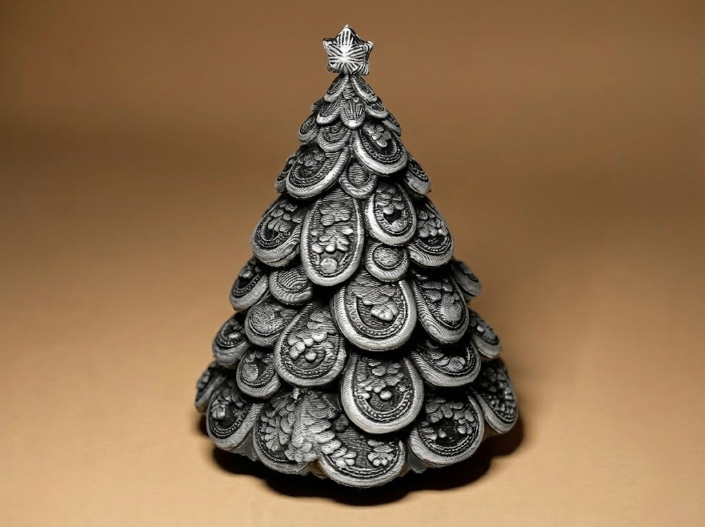 Obiect decorativ format din straturi bogate cu relief baroc și texturi sculptate. Siluetă elegantă, volum plin și accente metalice care dau un aer vintage, festiv și sofisticat. Perfect pentru masă, șemineu, etajeră sau decor de sezon.